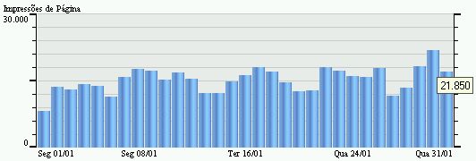 Gráfico de Impressões de Páginas Uma ' Impressão de página ' é definida como uma requisição do navegador de um visitante para uma página web que possa ser exibida, geralmente um arquivo HTML. A configuração do Urchin controla as extensões de arquivos que são consideradas ou não como Impressões de Páginas. Em termos gerais, imagens e outros conteúdos anexados, como folhas de estilos (CSS) e JavaScript, não são considerados como Impressões de Páginas. |