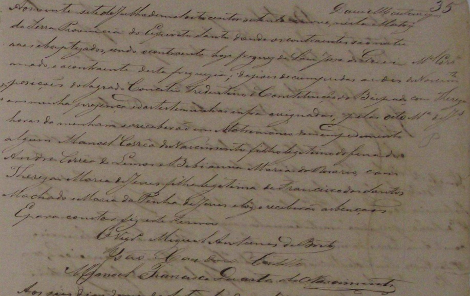 - Manoel Correia do Nascimento c.c. Thereza Maria de Jesus, filha de Francisco dos Santos Machado e Maria da Penha de Jesus