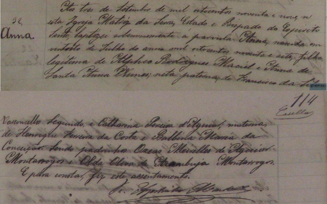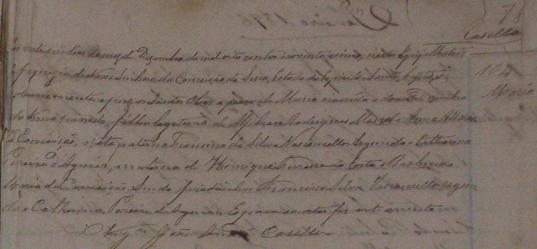 - Maria, batizada no dia 06/12/1895, na Igreja de Nossa Senhora da Conceição da Serra-ES