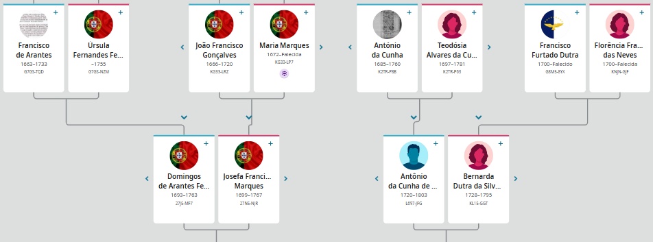 A genealogia de Florencia Francisca das Neves é a que possui antepassados mais antigos, inclusive Rei Afonso IX de Leon (1171 - 1230) https://www.familysearch.org/pt/tree/pedigree/portrait/KG33-GLG