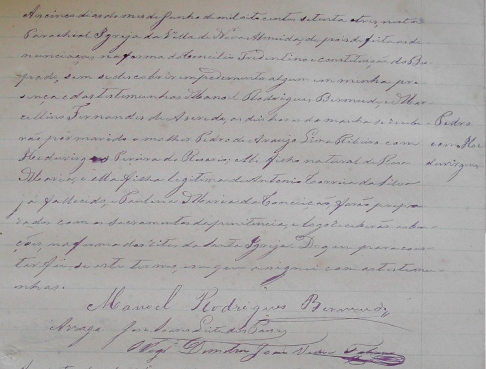 - Heduvirges Pereira do Rosario c.c. Pedro de Araujo Lima Ribeiro, filho natural de Roza Maria