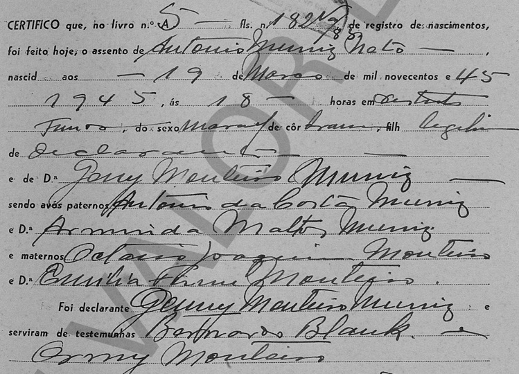 - Antonio Muniz Neto (19/03/1945, às 18 horas, em Fundão-ES
