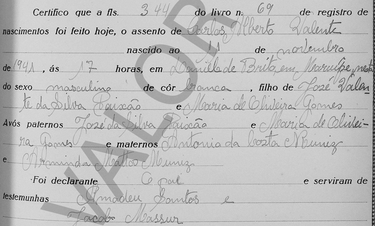 - Carlos Alberto Valente (11/11/1941, às 17 horas, em Maruipe-ES)