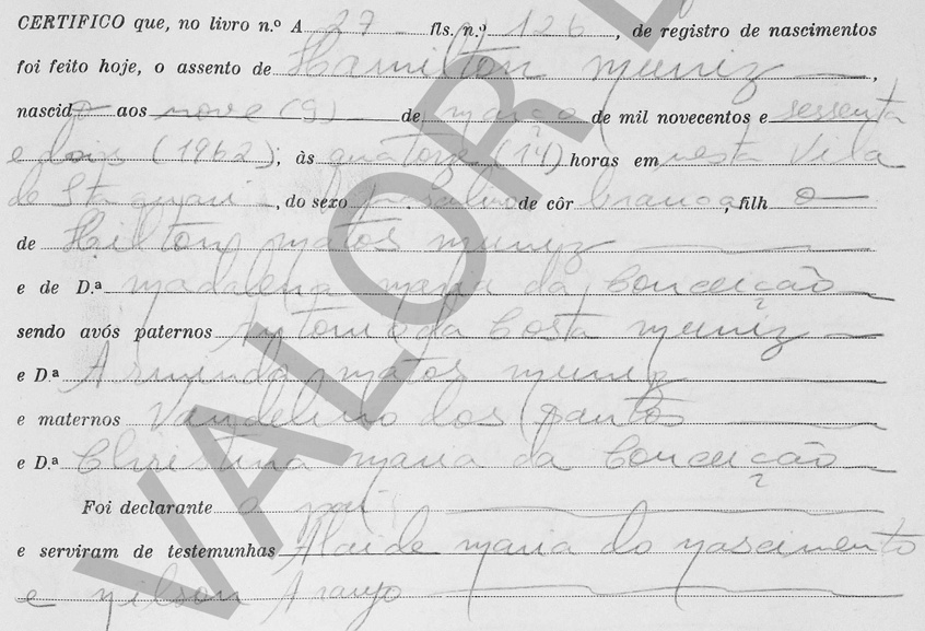 - Hilton Mattos Muniz c.c. Madalena Maria da Conceição, filha de Vandelino dos Santos e Christina Maria da Conceição