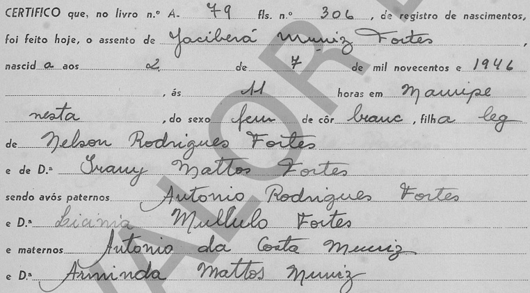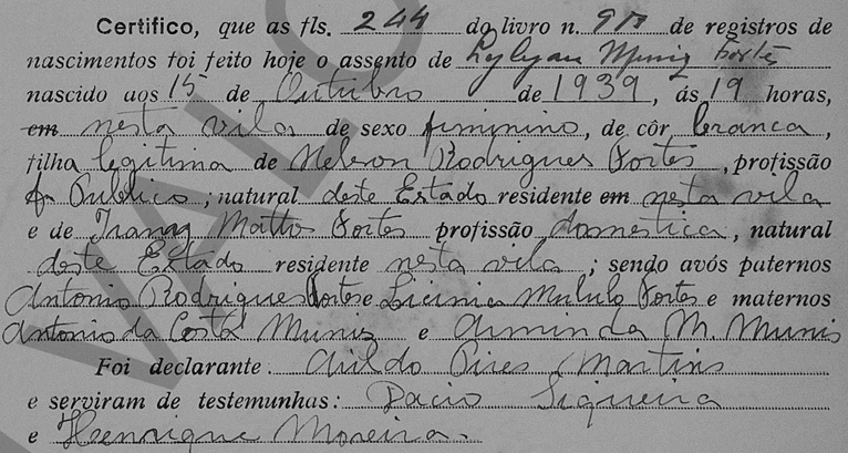 - Lylyan Nuniz Fortes (15/10/1939, às 19 horas, em Itaquari, Vitoria-ES)
