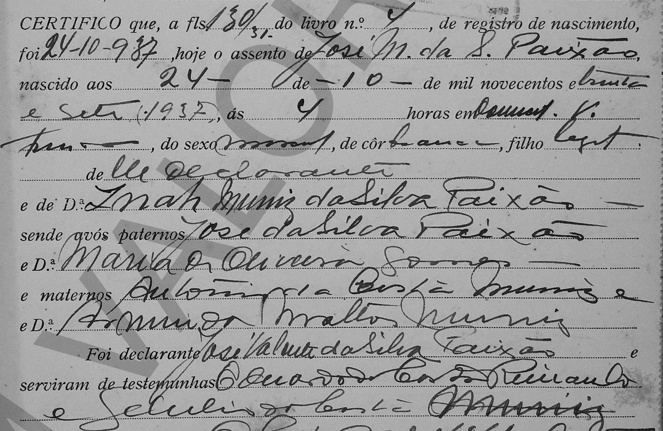 - Jose Muniz da Silva Paixão (24/10/1937, às 4 horas, em Fundão-ES)