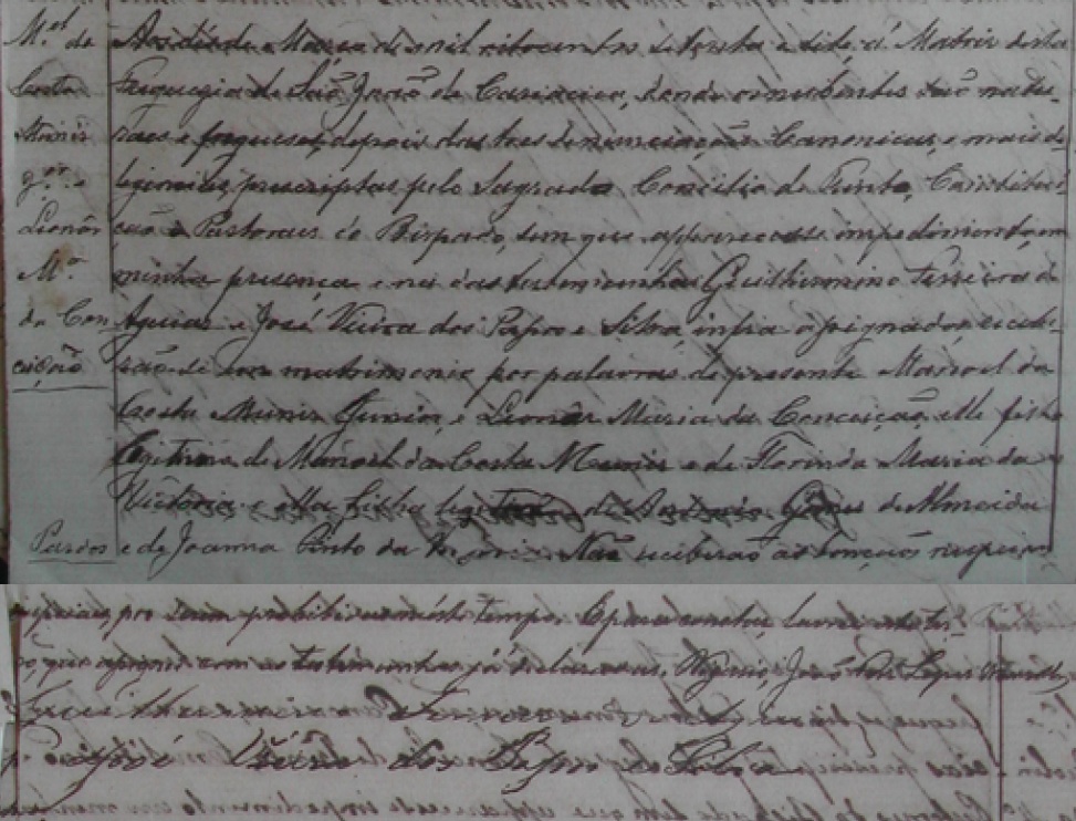 Anna Maria da Conceição c.c. Francisco Pinto das Chagas, filho de Joaquim Pinto do Rosario e Florinda Pinto da Boa Morte