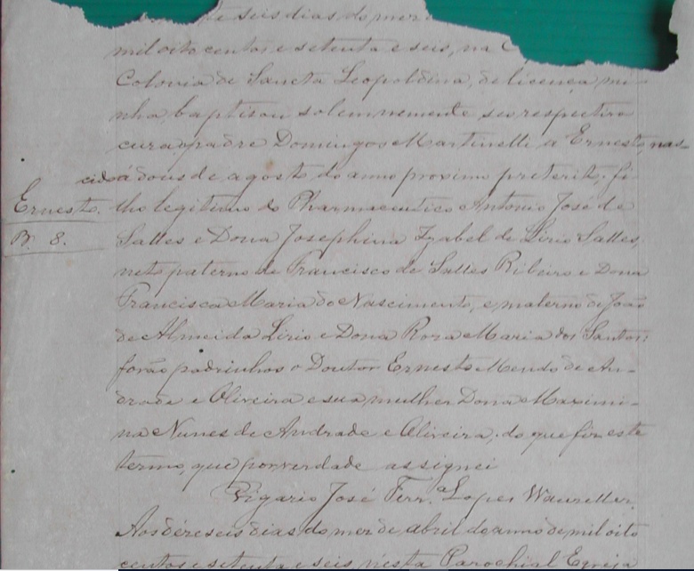 - Ernesto, nascido no dia 02/08/1875, 16/04/1876, em Queimados-ES