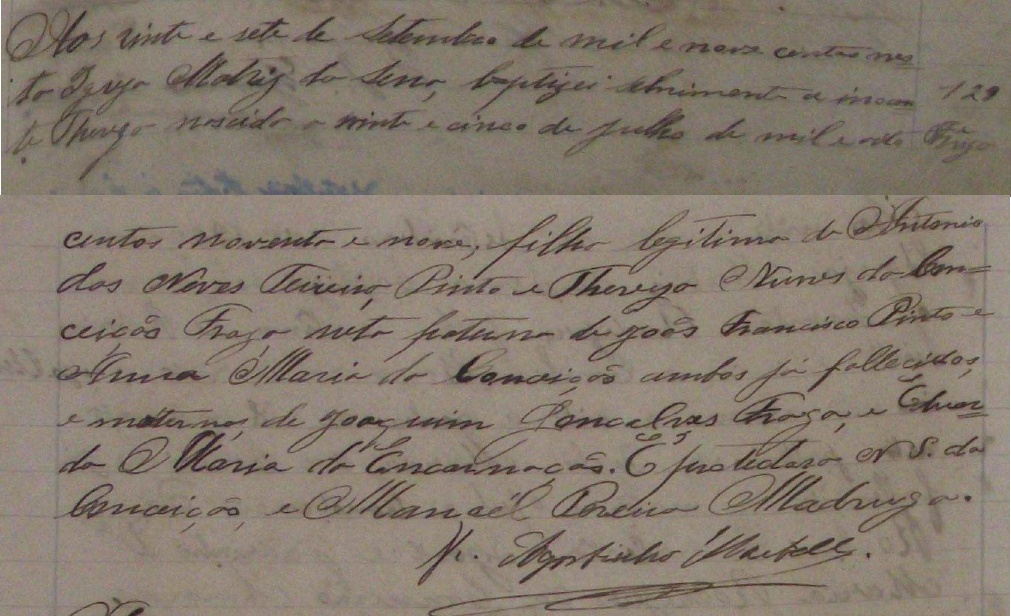 - Thereza, nascida no dia 25/07/1899, batizada no dia 27/09/1900, na Igreja Matriz da Serra-ES
