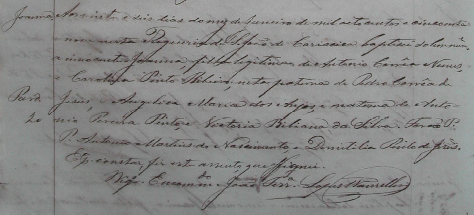 - Joanna, batizada no dia 26/01/1859, na Freguezia de São João de Cariacica-ES