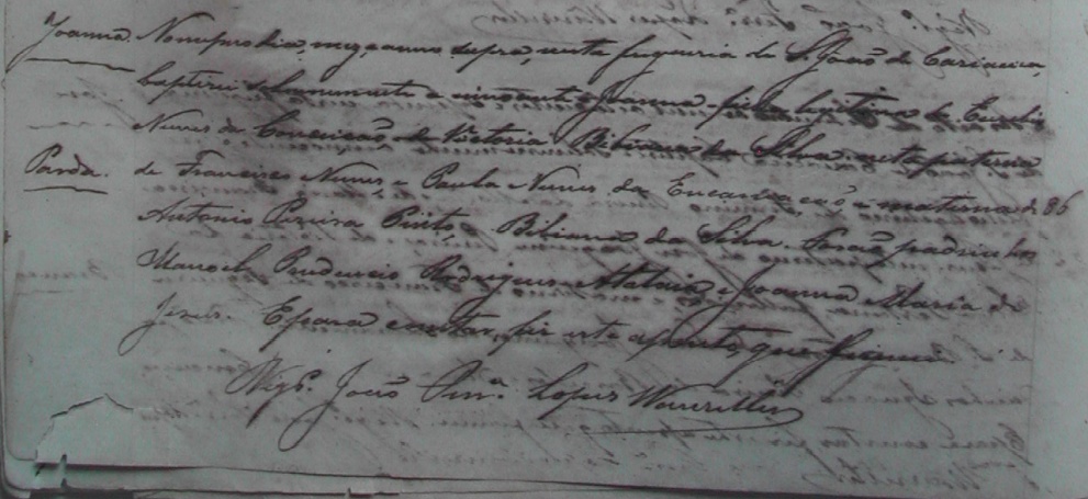 - Joanna, batizada no dia 16/09/1860, na Freguezia de São João de Cariacica-ES