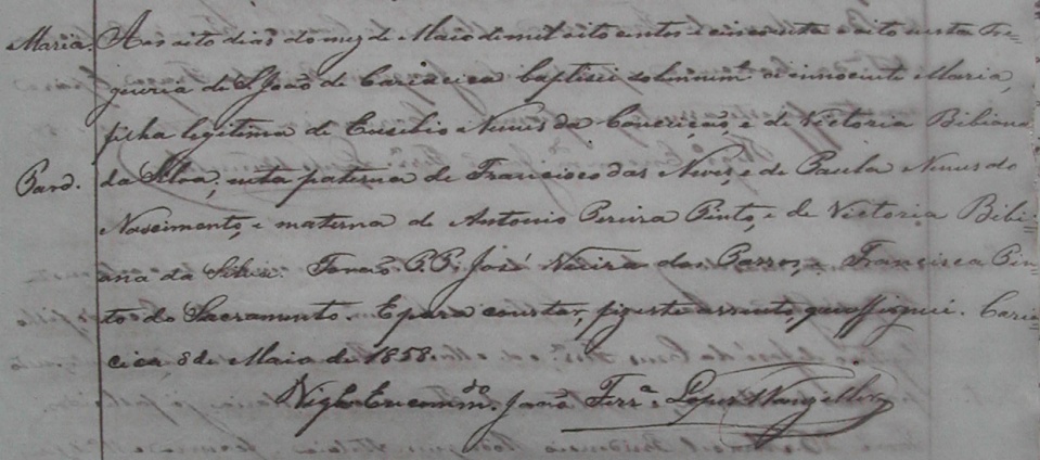 - Maria, batizada no dia 08/05/1858, na Freguezia de São João de Cariacica-ES