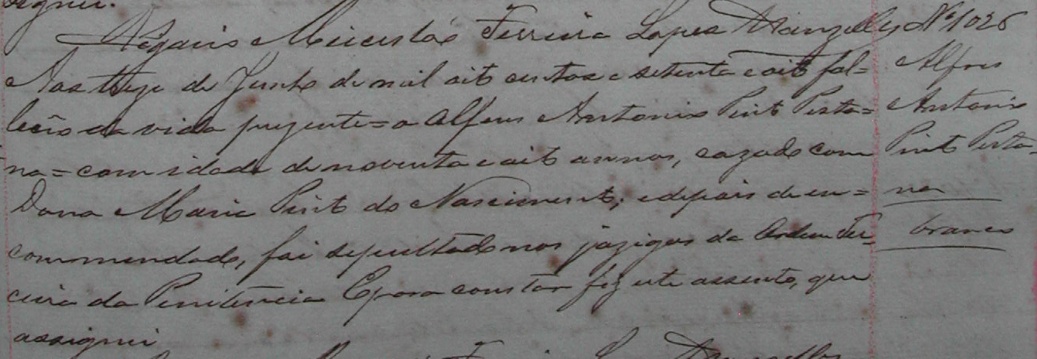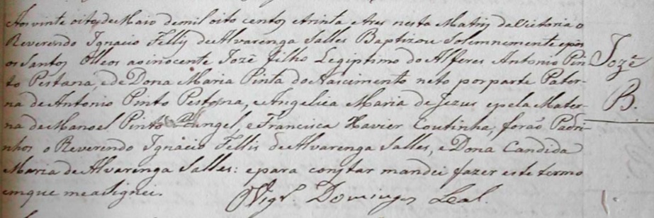 Batizado no dia 08/03/1840, na Matriz de Vitoria-ES