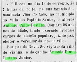 - Revd. Sr. Vigario da Villa de Vianna-ES, conforme nota de falecimento do seu pai, acima