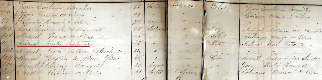 Em 1878 estava com 38 anos, solteiro, lavrador, não sabia ler e escrever, filho de Antonio Pinto Pestana,