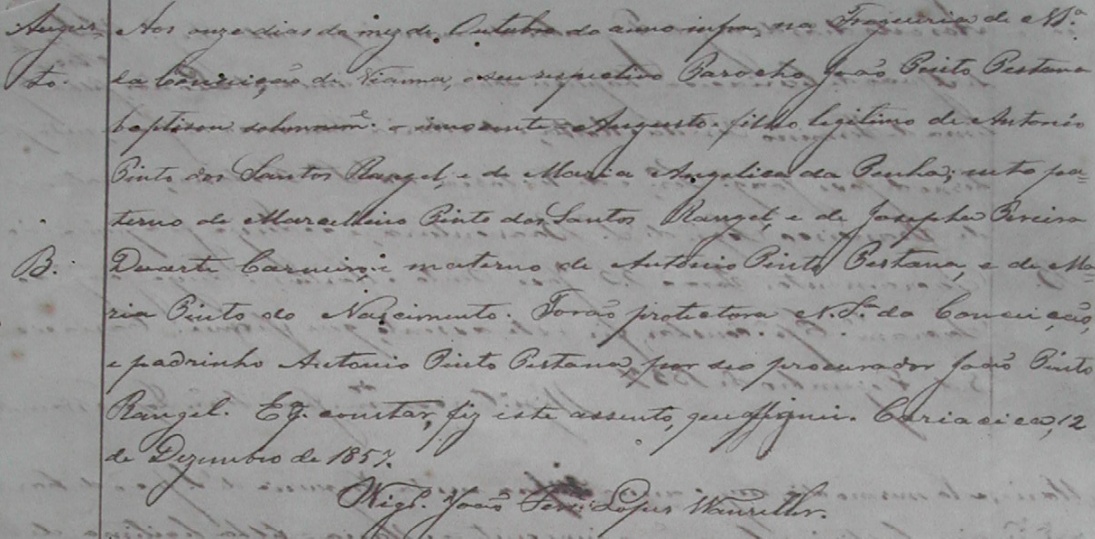 - Augusto, batizado no dia 11/10/1857, na freguezia de N.S. da Conceição de Vianna-ES