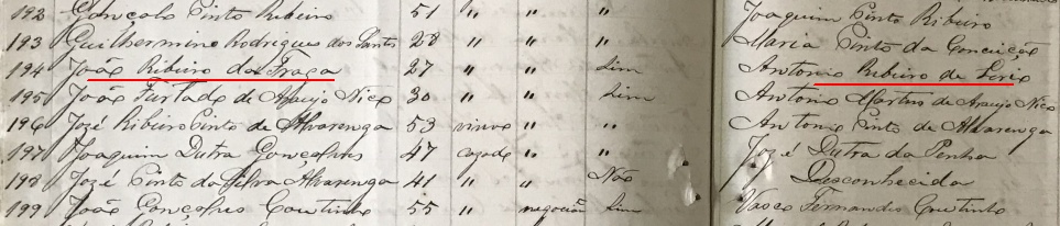 Estava com 27 anos em 1878, cazado, lavrador, sabia ler e escrever, filho de Antonio Ribeiro de Lirio, elegível, renda de $500.000, conforme Lista de eleitores de Queimados, registro 194