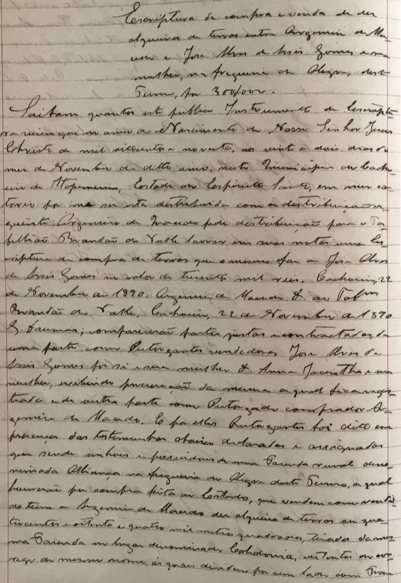 registrado em Cachoeiro do Itapemirim, no ano de 1890.