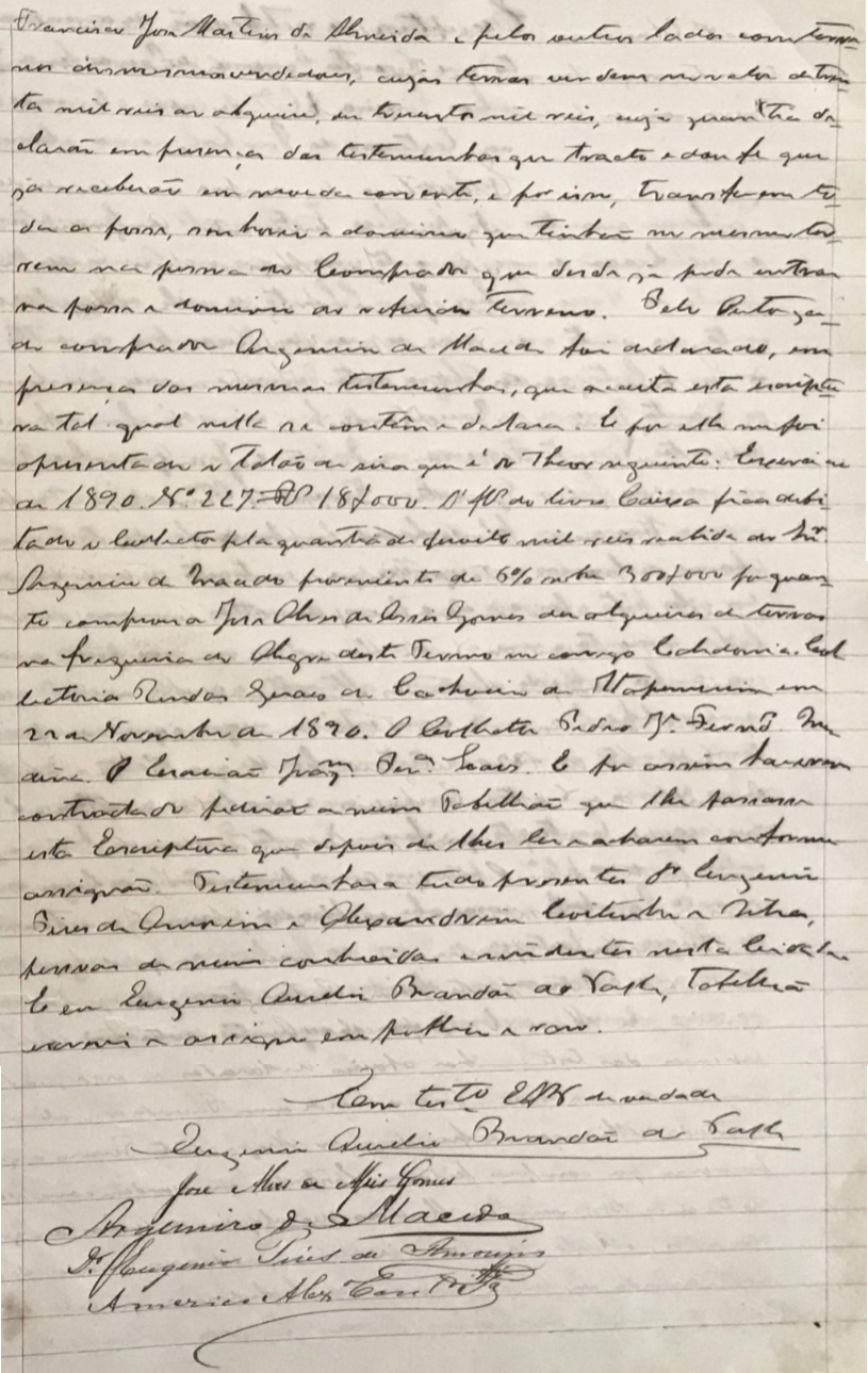 Escritura de compra e venda de terra, em Alegre-ES,
