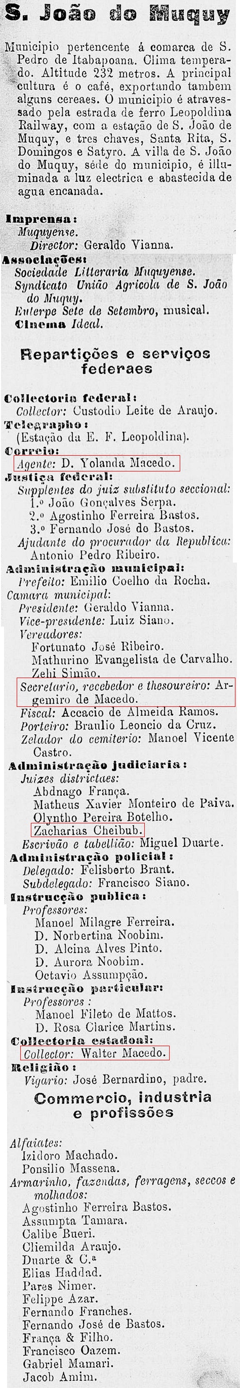 (Coletor em Muqui-ES, em 1919, conforme Jornal Muquyense de 1919 edição 00342)