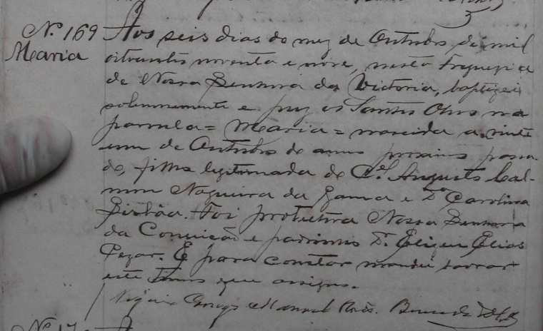 - Maria, nascida no dia 21/10/1898, batizada no dia 06/10/1899, na Matriz de Vitoria-ES