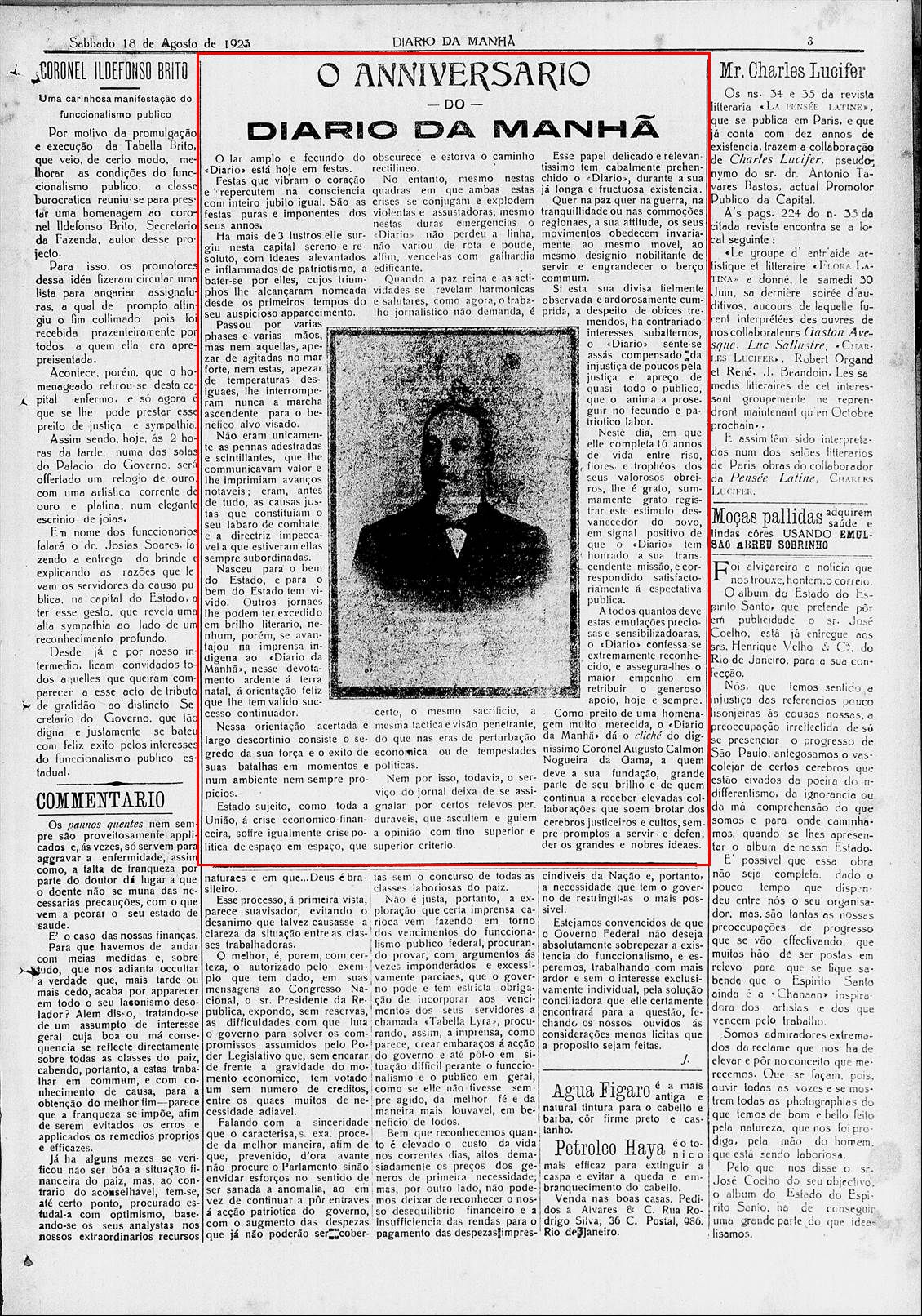 em 1923, conforme Diario da Manhã - Ano 1923\Edição 00209 (1), foi nomeado Diretor Geral do Arquivo Público