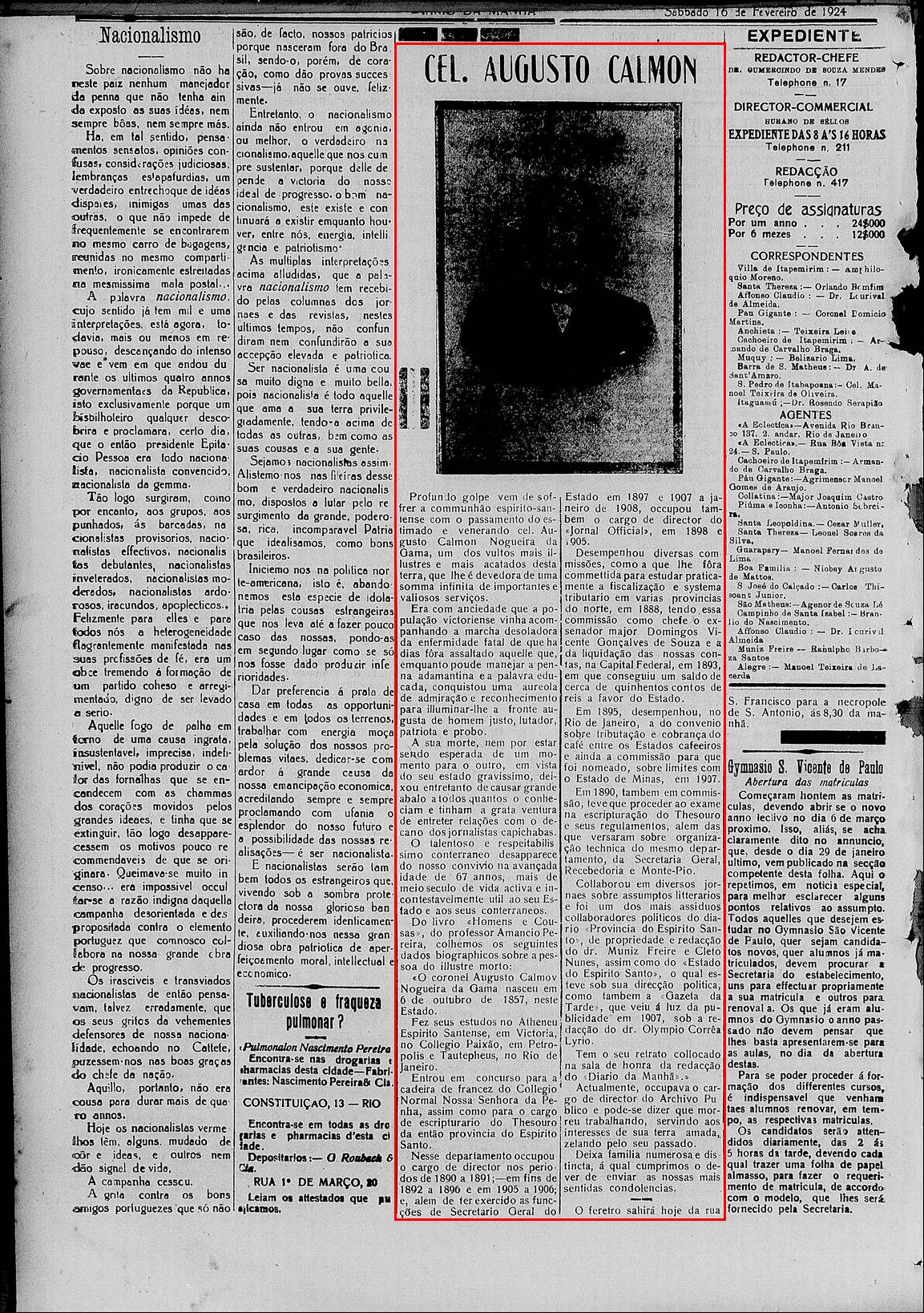 1924 - Falecimento de Augusto Calmom Nogueira da Gama