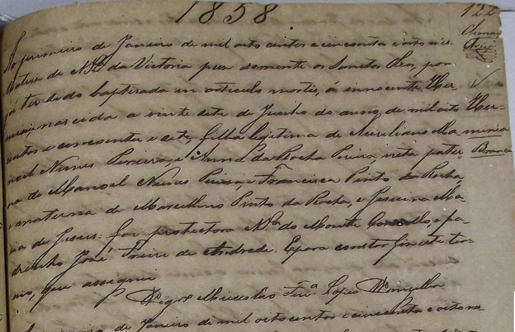 - Herminia, nascida no dia 27/06/1858, batizana no dia 01/01/1858, na Matriz de Vitoria-ES