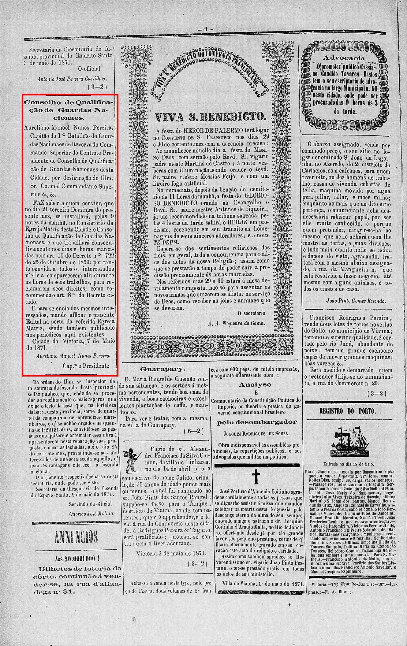 1871 - Capitão Aureliano Manoel Nunes Pereira