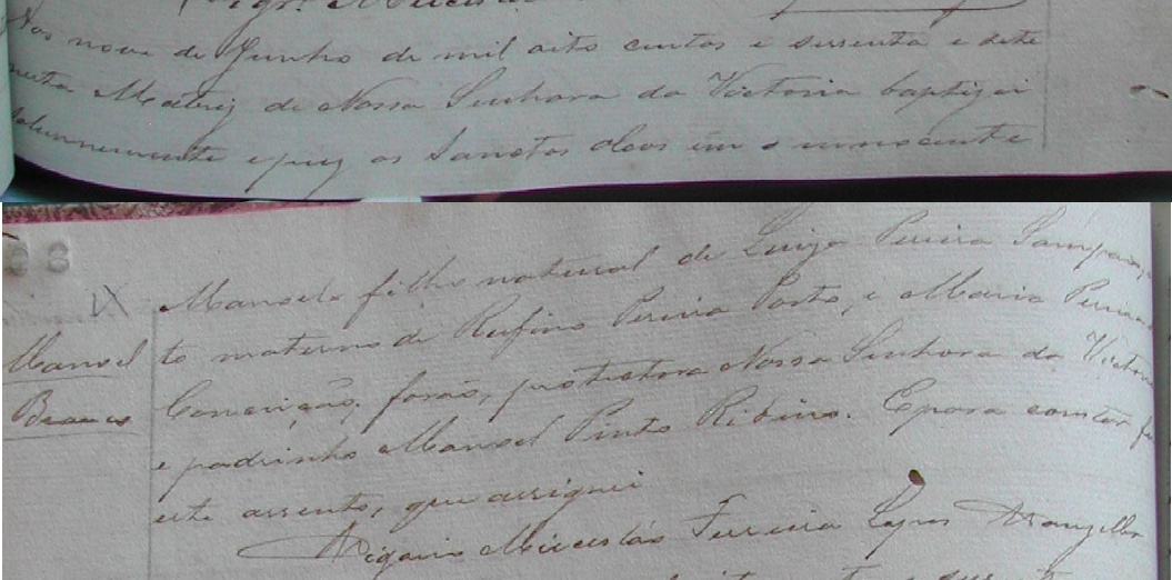 Certamente correto deve ser Luiza Pereira Sampaio, conforme registro de batismo do filho Manoel abaixo