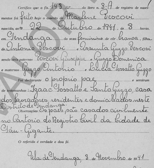 - Marlene Vescovi (22/10/1941, às 3 horas, Pendanga-ES)