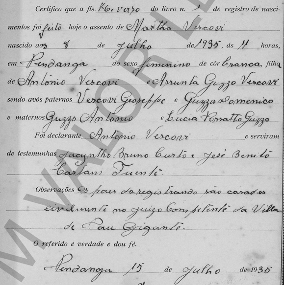 - Martha Vescovi (08/07/1935, às 11 horas, em Pendanga-ES