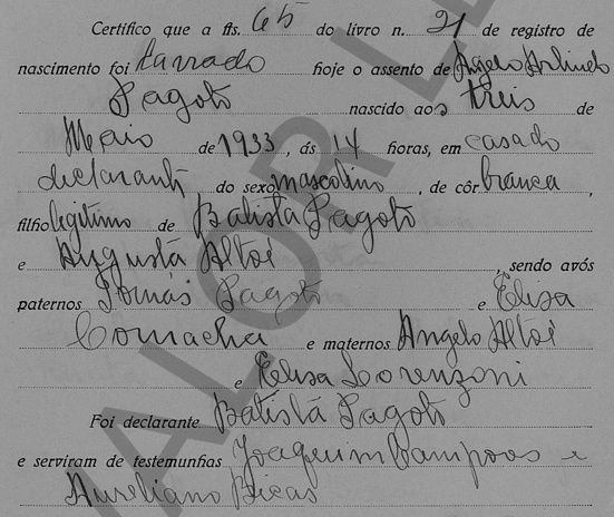- Vitorio Pagoto c.c. Leonila Calimam Pagoto, filha de Antonio Calimam e Angelica Preda