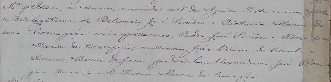 - Maria, nascida no dia 05/08/1874, batizada no dia 26/12/1874, em Anchieta-ES