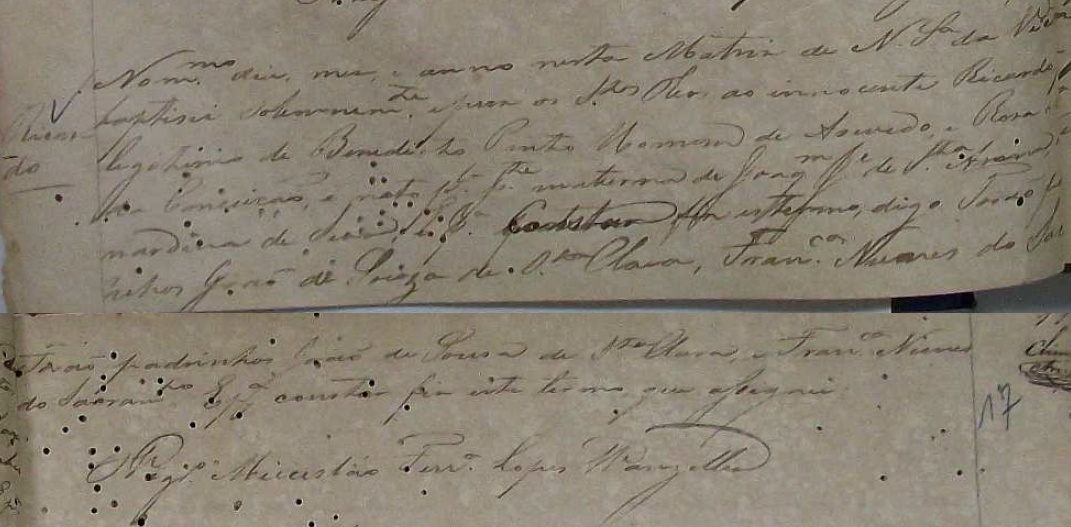 Padrinhos: João de Souza de Santa Clara e Francisca Nunes do Sacramento