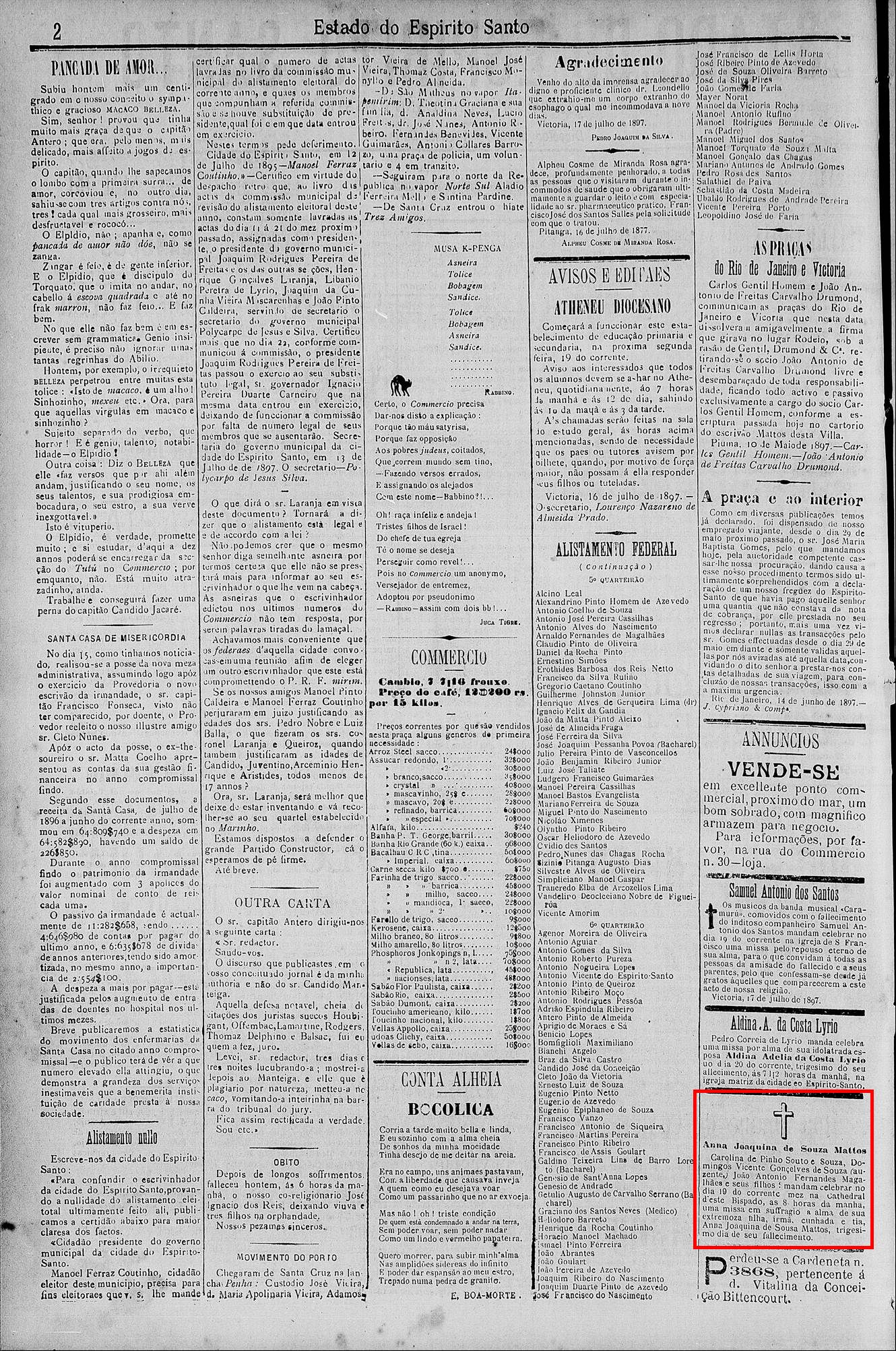 Anna Joaquina de Souza Mattos, falecida em 1897, conforme jornal abaixo