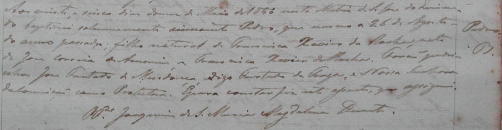 - Pedro (filho natural), nascido no dia 26/08/1849, batizado no dia 25/05/1850, na Matriz de São Jose do Queimado-ES