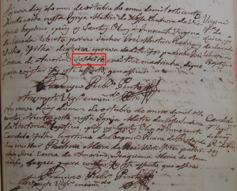 - Manoel Francisco do Nascimento c.c. Luiza Pinta de Alvarenga, filha de Antonio de Mattos Pinto e Vicencia? Ferreira da Conceição