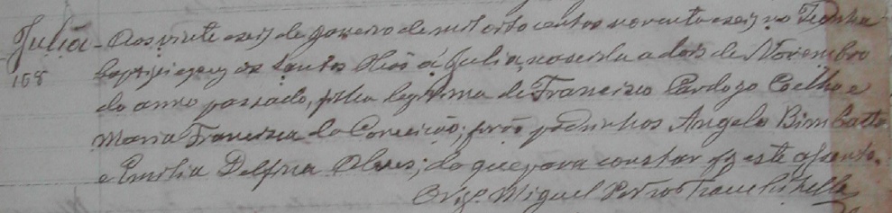 - Julia, nascida no dia 02/11/1895, batizada no dia 26/01/1896, em Iconha-ES