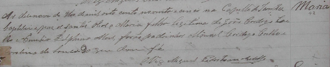 Padrinhos: Manoel Cardoso Coelho e Carolina de Sousa