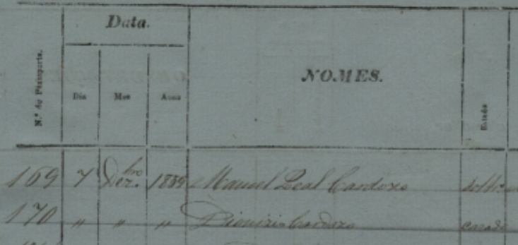 Fonte: Passaportes - Angra do Heroísmo 1857-1863, página 44, n° 170