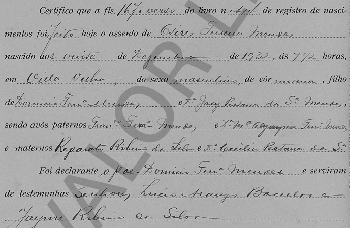 - Osires Ferreira Mendes (20/12/1932, às 1,1/2 horas, em Vila Velha -ES) c.c. Anna