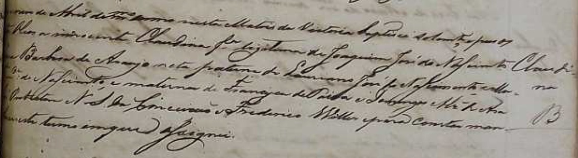 - Claudina, batizada no dia 01/04/1846, na Matriz de Vitoria-ES