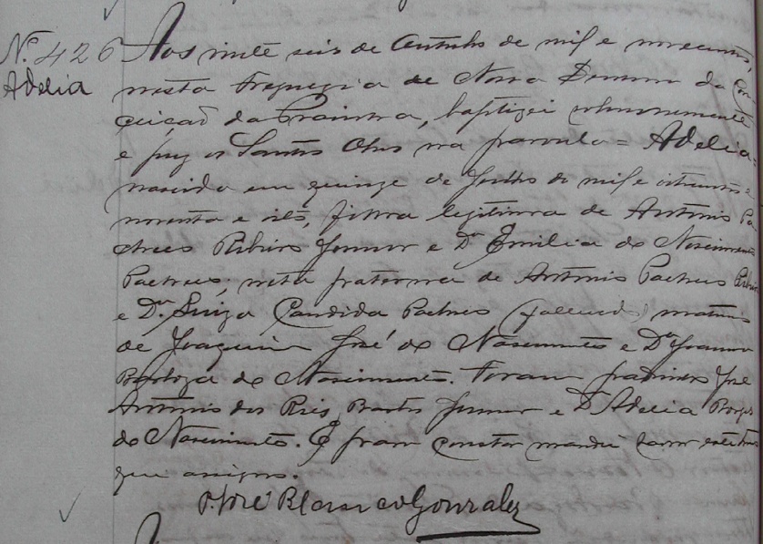 - Adelia, nascida no dia 15/07/1898, batizada no dia 26/10/1900, na Freguezia de Nossa Senhora da Conceição da Prainha - Vila Velha-ES