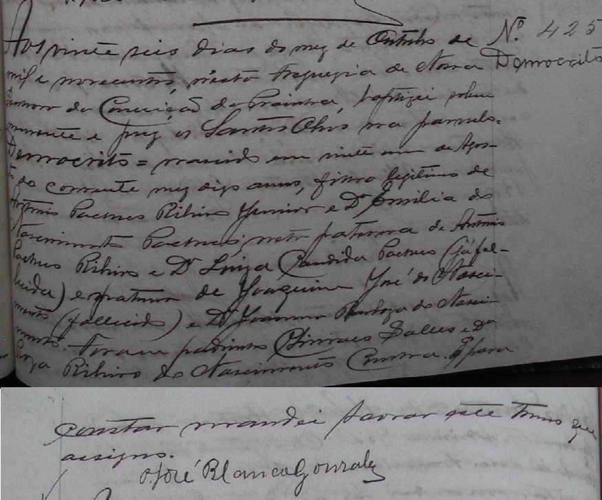 - Democrito, nascido no dia 21/08/1900, batizado no dia 26/10/1900, na Freguezia de Nossa Senhora da Conceição da Prainha - Vila Velha-ES