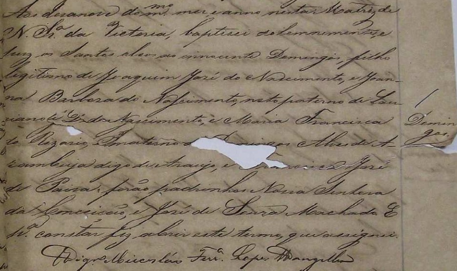 - Domingos, batizado no dia 31/10/1840, na Matriz de Vitoria-ES