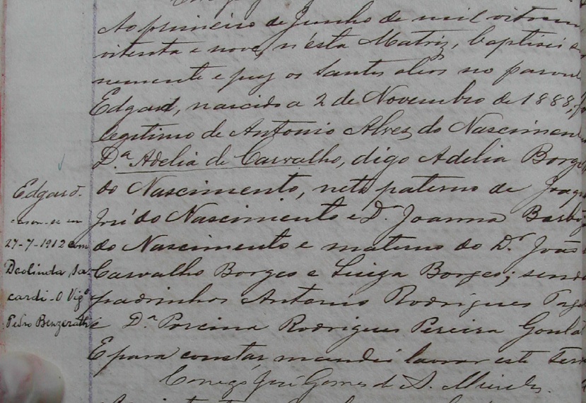 - Edgard, nascido no dia 02/11/1888, batizado no dia 01/06/1889, na Matriz de Vitoria-ES