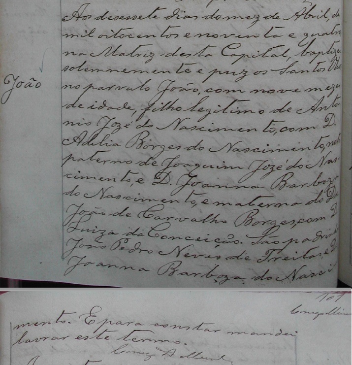 - João, com nove meses de idade, batizado no dia 17/04/1894, na Matriz da Capital-ES