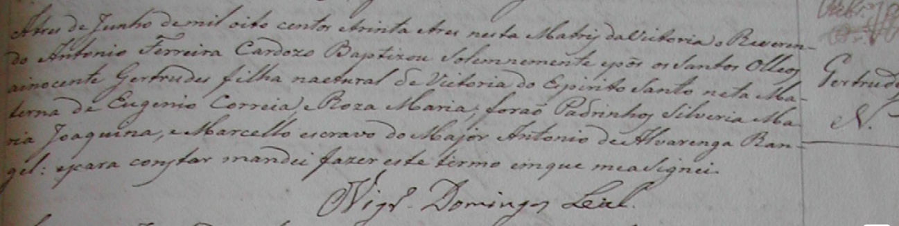 - Gertrudes (N - Filha natural), batizada no dia03/06/1833, na Matriz de Vitória