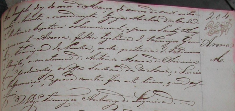 - Anna, batizada no dia 17/03/1839, na Matriz de Vitoria-ES